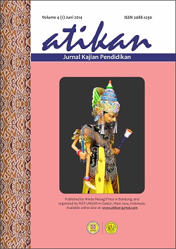 This journal, with ISSN 2088-1290, was firstly published on June 1, 2011. Since issue of June 2012, the ATIKAN journal has been organized by the Lecturers of FKIP UNSUR (Faculty of Education and Teacher Training, Suryakancana University) in Cianjur, West Java, Indonesia; and published by Minda Masagi Press as one of the publishers owned by ASPENSI (the Association of Indonesian Scholars of History Education) in Bandung. The ATIKAN journal is published twice a year i.e. every June and December.